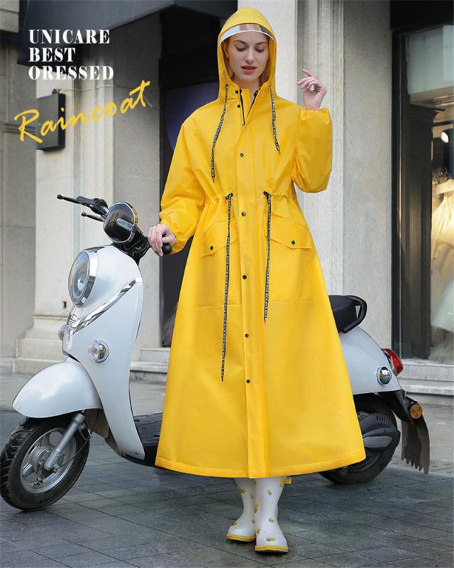 レインコートに適度な厚みや重量を持たせることで、風の強い日や豪雨の時に、レインコートが捲りあがるのを防ぎます!