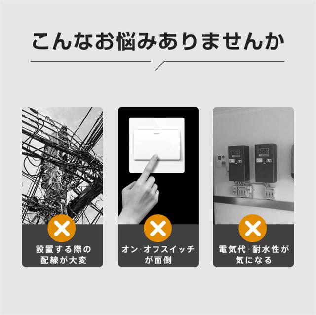 電気代・電源・配線不要で屋外や玄関を照らします!