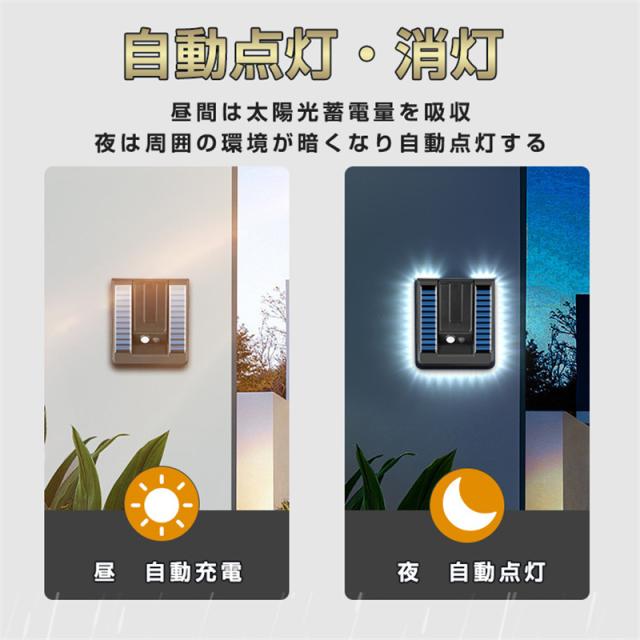 ソーラーライト 屋外 2個セット LEDライト 自動点灯 配線不要 センサーライト 防水 明るい 庭 駐車場 玄関 おしゃれ 壁掛