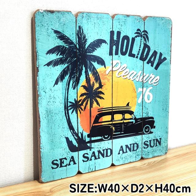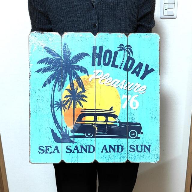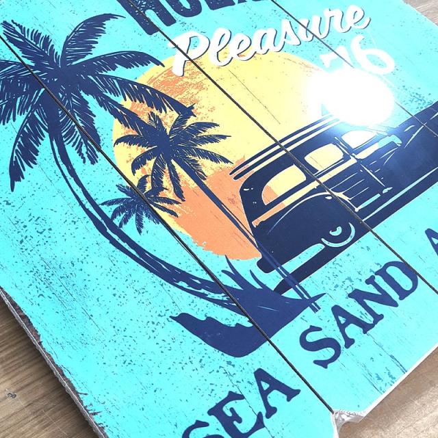 木製看板 ビーチ レトロ ハワイ ウッドボード おしゃれ アメリカン 雑貨 海 ディスプレイ ガレージ 壁飾り 置物 HOLIDAY Pleasure インテリア ブルー アンティーク かわいい バー
