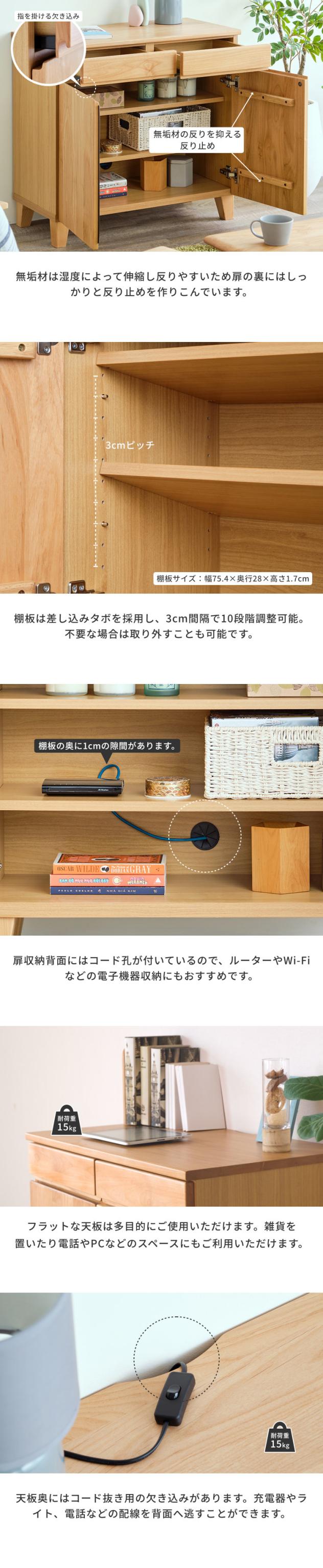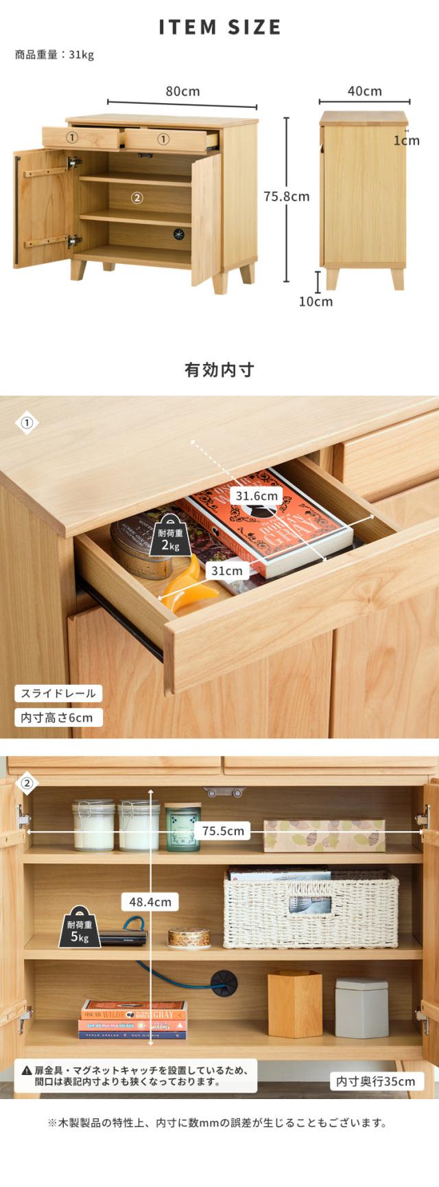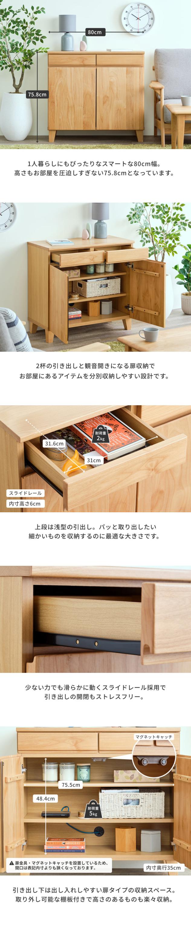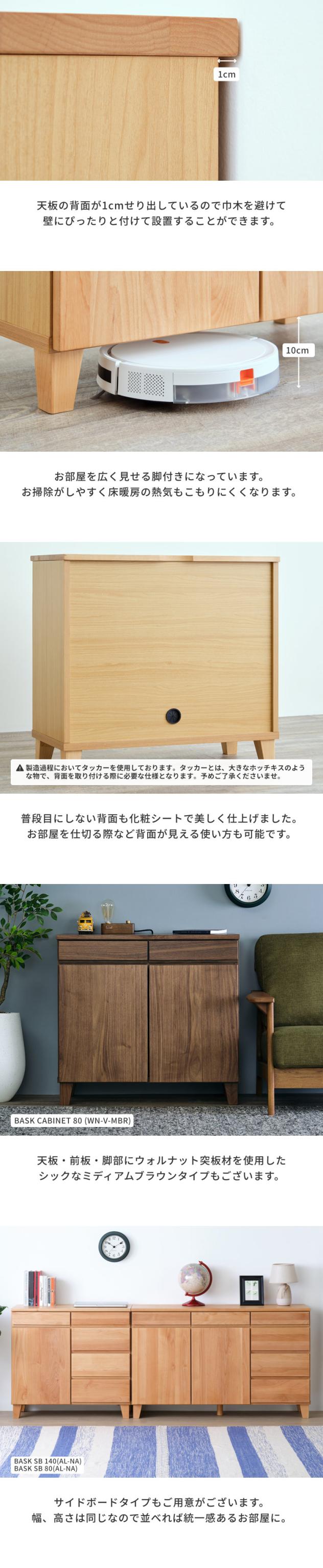 キャビネット サイドボード リビング収納 無垢 収納家具 収納 棚 幅80 引き出し 木製 北欧 おしゃれ シンプル モダン リビング 寝室 子供部屋 品質保証 BASK-3 CABINET 80 (AL-NA)