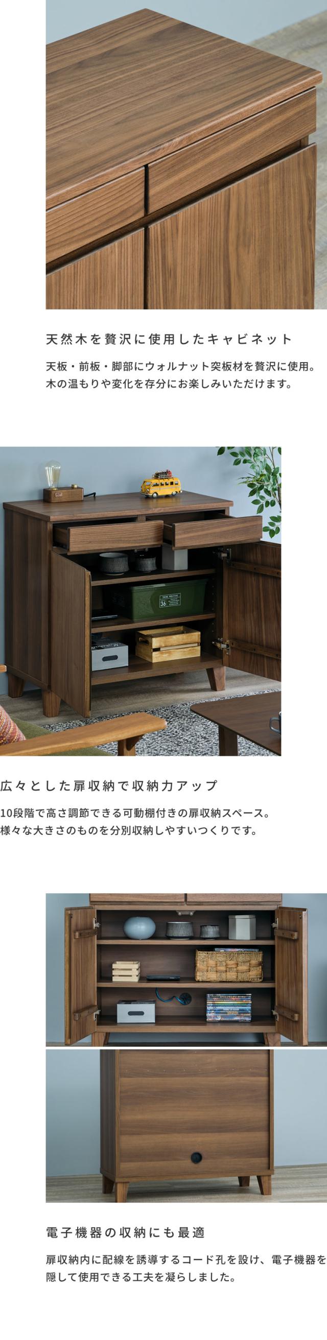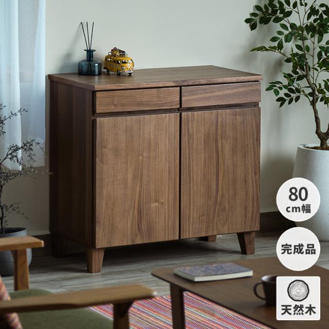 キャビネット サイドボード リビング収納 ウォールナット 収納家具 収納 棚 幅80 引き出し 木製 北欧 おしゃれ シンプル モダン リビング 寝室 子供部屋 品質保証 BASK-3 CABINET 80 (WN-V-MBR)