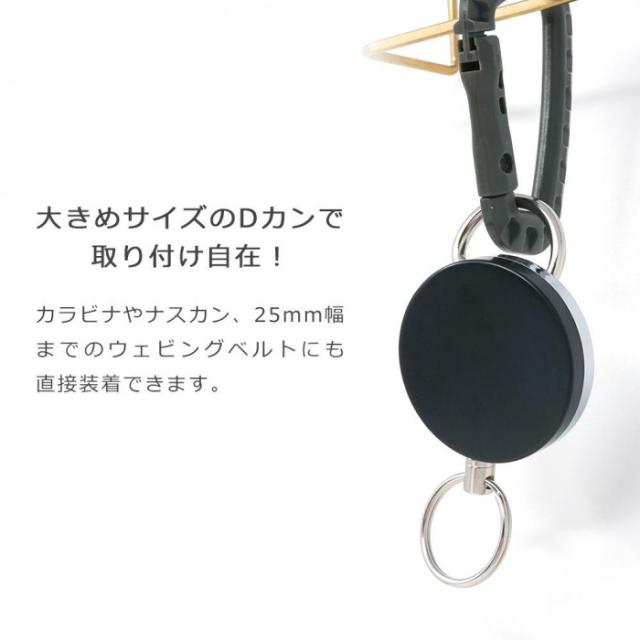商品詳細:今までのキーバックワイヤーを付けられなかった大きめのカラビナ、ナスカン、25ミリ幅までのウェビングベルト等に直接付けることができます。裏面には便利なベルトクリップ付き。 生産国:中国 素材・材質:プラスチック、ステンレス 商品サイズ:全長:約12cm(ワイヤー最大伸長120cm) 仕様:巻き戻し能力:120g全部伸出時荷重:2kgワイヤー:ステンレス撚線
