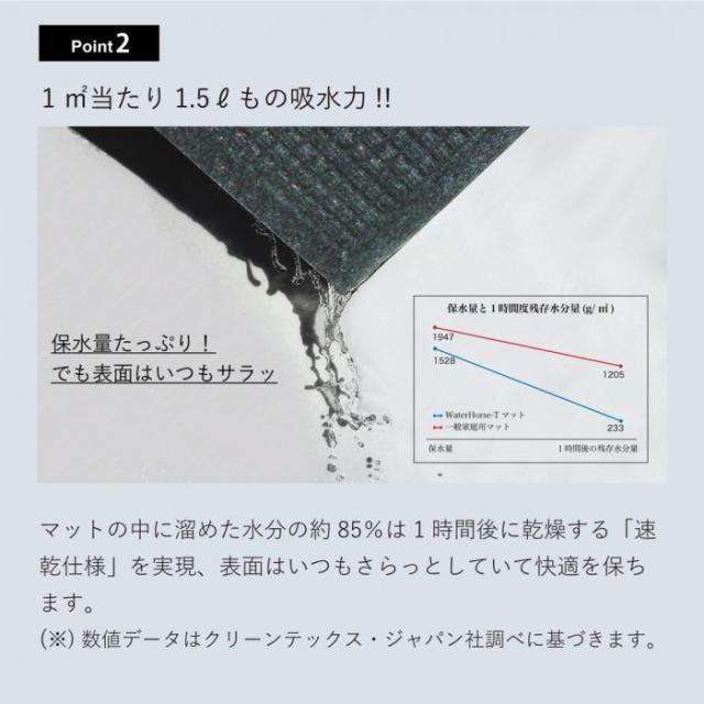 商品詳細:特殊製法による凹凸形状で立体的に水分や汚れを掻き取る業務用設計の玄関マット。キャッチした水分の85%が1時間後には乾燥、速乾タイプなので雨の日用マットとしても最適です。 生産国:タイ 素材・材質:表 : ポリプロピレン70%・ポリエステル30%、裏 : 特殊合成ゴム(NBR) 商品サイズ:88×116cm 重量:3240g 仕様:厚み:約8mm 付属品:取扱説明書