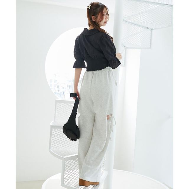 後ろがシャーリングゴムになっているので、身体にフィットするコンパクトなサイズ感に。