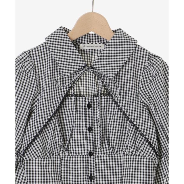 襟元のリボンやレースのトリミングでスイートなムードをプラスしました。