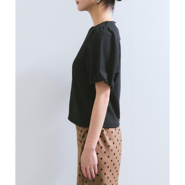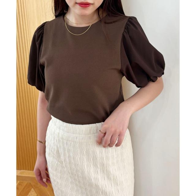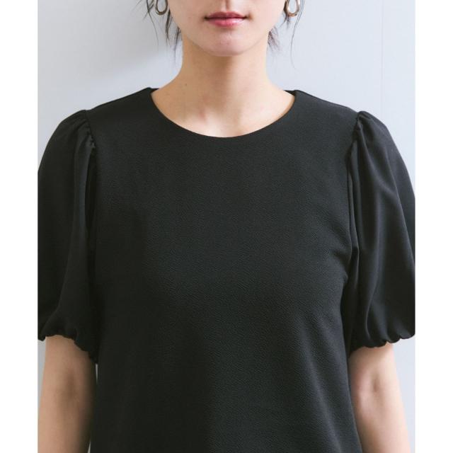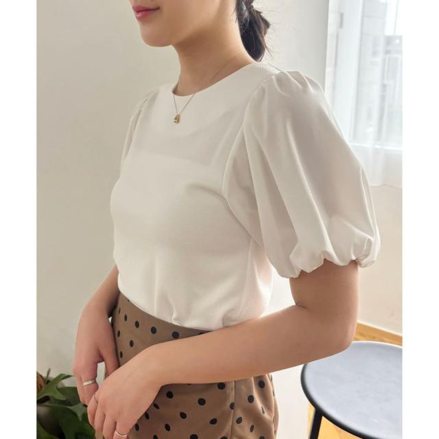 肩からふわりと立ち上がるようなパフスリーブが、二の腕をやさしく包み込みながら、自然なボリューム感を演出。甘すぎず程よい立体感で、1枚で女性らしい印象に仕上がります。