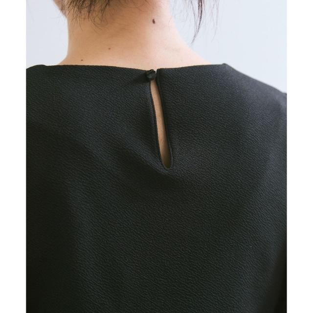 身頃には表面感のある柔らかいカットソー素材を、袖には柔らかで触り心地の良い布帛を使用した異素材コンビ。さらりとした肌触りで快適な着心地ながら、きちんと感も両立できるのが魅力です。