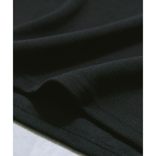 身頃は表面感のあるカットソー素材を使用し、身体のラインを拾いにくい、ややゆとりのあるストレートシルエット。トレンド感のある短すぎないクロップド丈に設計し、スカートにもパンツにもバランスよく合わせやすく、タックインしなくてもサマになる絶妙な丈感です。