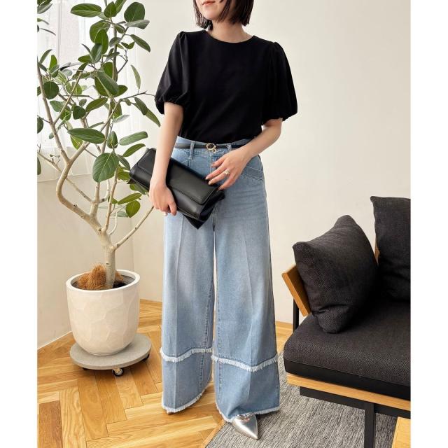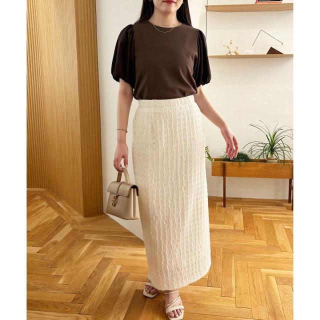 Iラインスカートでスッキリと、ふんわりとしたフレアスカートなら、より華やかで柔らかな印象に仕上がります。センタープレス入りのテーパードパンツや、しなやかな素材感のワイドパンツに合わせれば、甘さをほどよく抑えた大人可愛いスタイリングに。ウエストインでメリハリをつけたり、アウトでラフに着こなしてもサマになる一枚。通勤はもちろん、ちょっとしたお出かけやデートシーンにもぴったりな、着映えトップスです。