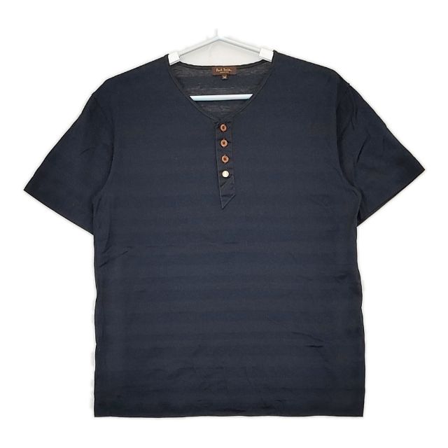 PAUL SMITH COLLECTION ヘンリーネック ボーダー 日本製 半袖Tシャツ カットソー ネイビー ブラック メンズ ポールスミスコレクション【中古】5-0609S∞