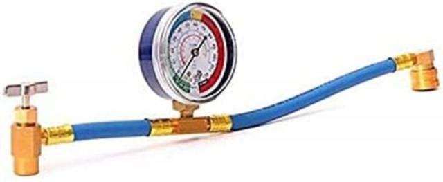 R134a用のサービス缶バルブ+ホース+メーター+クイックジョイント一体型のガス補充パーツです。