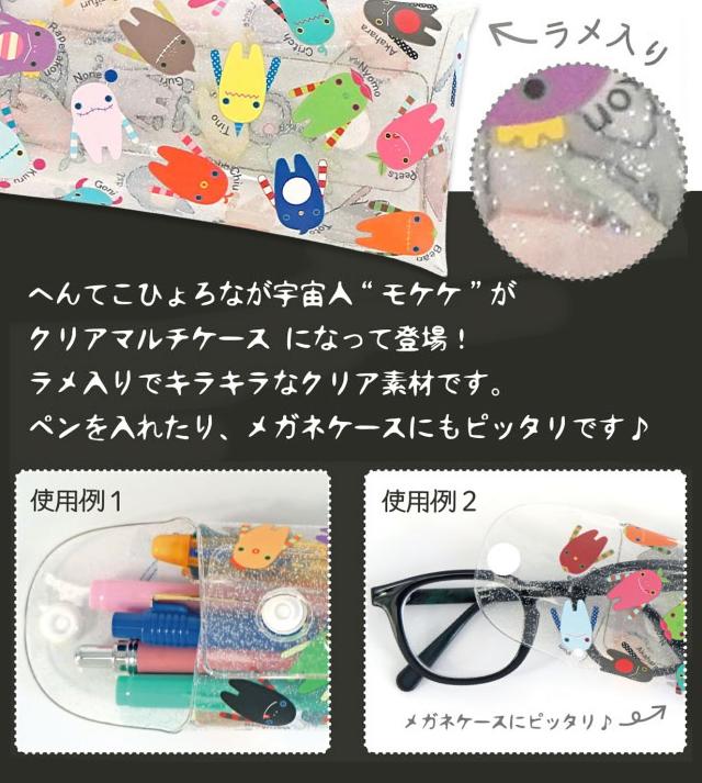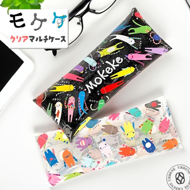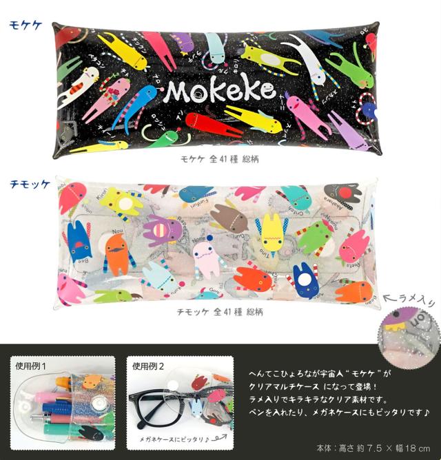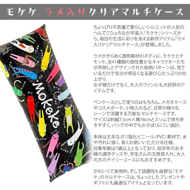 【 ラメ入りクリアマルチケース 】モケケ もけけ ペンケース メガネケース ポーチ チモッケ 総柄デザイン スリムサイズ ( CMMK-0090 ) 小物入れ 筆入れ 文房具 キャラクターグッズ シナダ メンズ レディース きもかわいい おしゃれ アーベン 普段使い