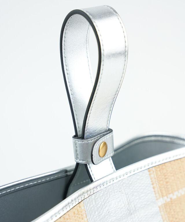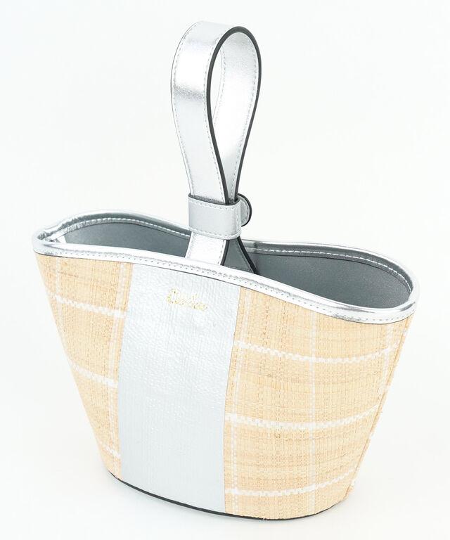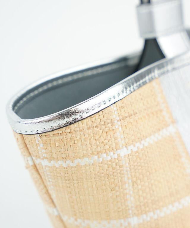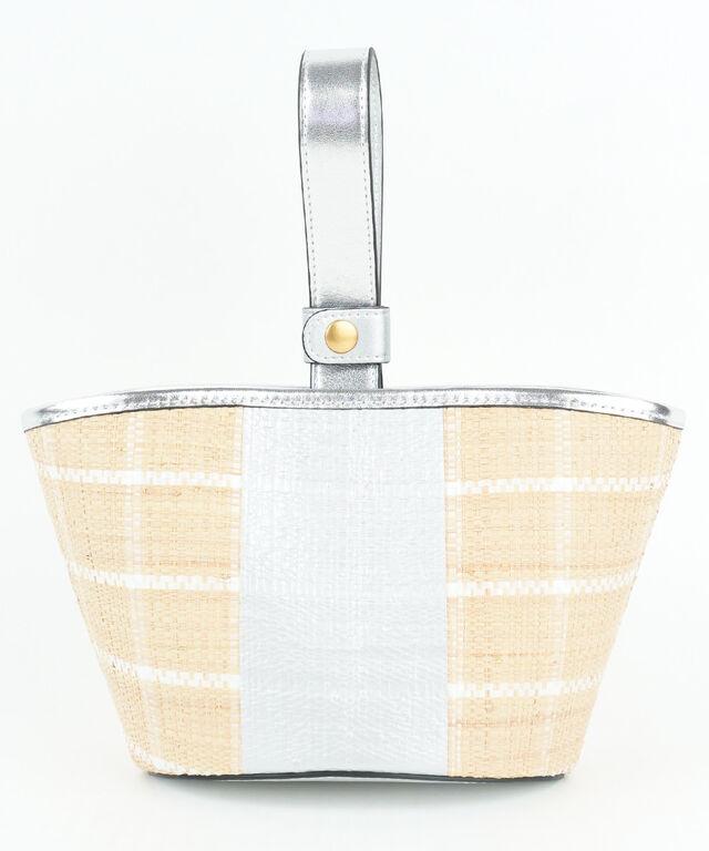マダガスカル製のチェック柄のラフィアシートを使用したハンドバッグです。