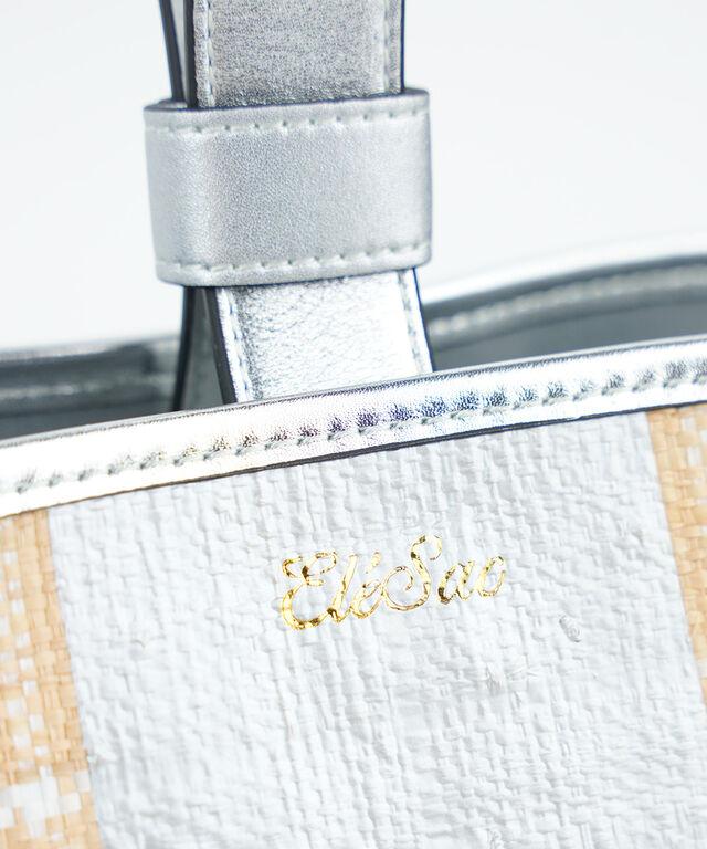 中央のプリントラインが目を惹くミニバッグは、トップハンドルが特徴的♪