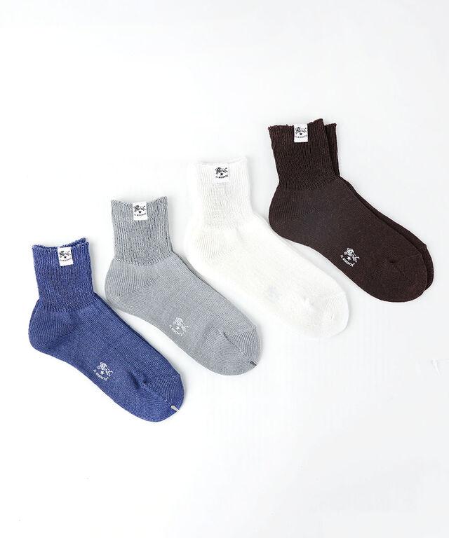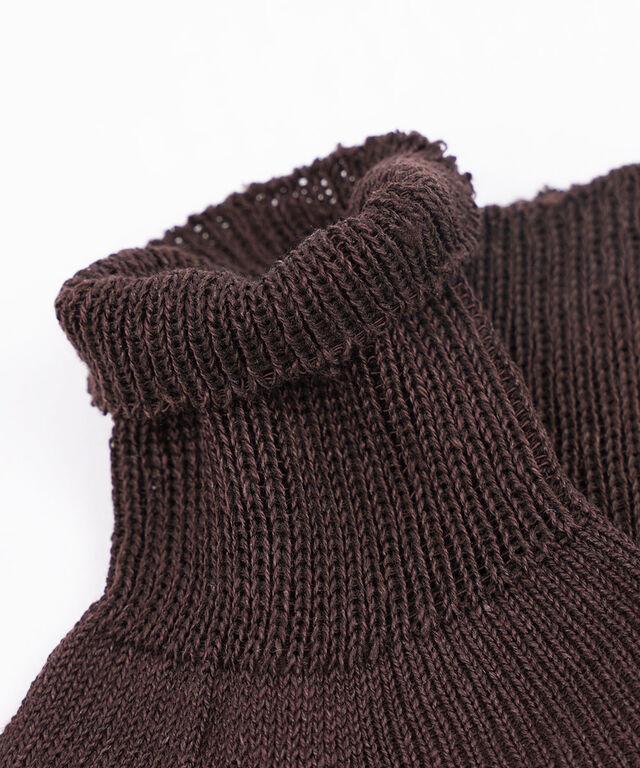 麻を織り交ぜたさっぱりとした風合いのニットソックス。