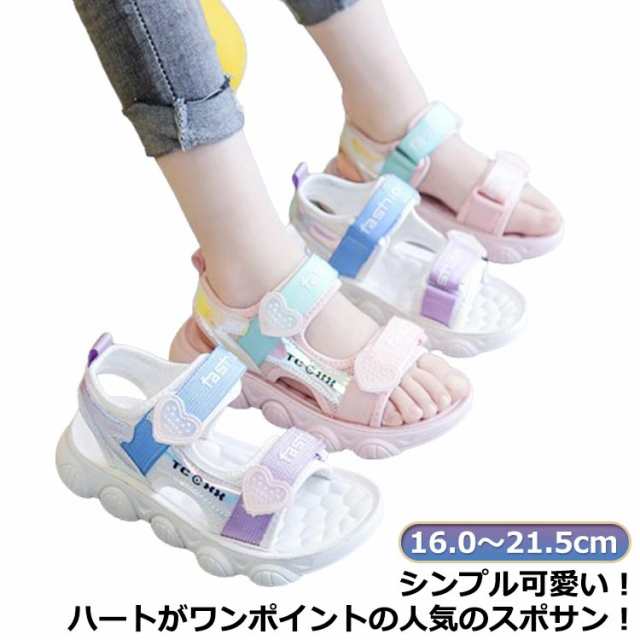 可愛い スポサン かわいい サンダル スポーツサンダル キッズ 女の子 ガールズ 韓国風 キッズ ジュニア 子供 子ども 子ども靴 スポサン 軽量 かわいい おしゃれ トレンド グラデーション ホワイト ピンク アウトドア 海 プール 夏 ベルクロ ハート