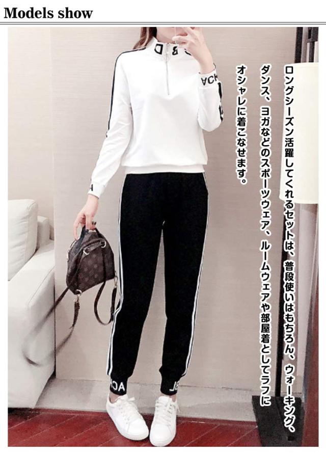 | 2本ラインのスウェットセットアップが登場です♪ 袖口と足首にキュッと絞りを入れたメリハリのあるデザインで、着るだけでこなれ感を演出してくれます 首元は、ファスナーで調整できるので、インナーにTシャツや見せキャミソールを合わせても違った雰囲気をお楽しみいただけます! ロングシーズン活躍してくれるセットは、普段使いはもちろん、ウォーキング、ダンス、ヨガなどのスポーツウェア、ルームウェアや部屋着としてラフにオシャレに着こなせます。 | |