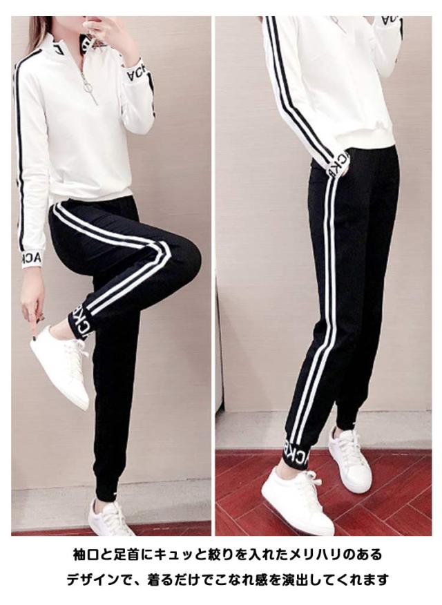 スウェットパンツ レディース トップス 上下セット スエットパンツ スウェット ジョガーパンツ ハーフジップ ジャージ シンプル ジャージ サイドライン バイカラー スポーツパンツ ポケット付き セットアップ ヨガ ランニング トレーニングウェア 春 夏 秋