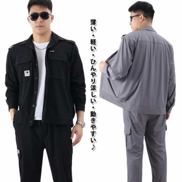 アイスシルク 作業ウェア 作業服 上下セット 作業着 薄い 涼しい セットアップ ブルゾン 作業ズボン 夏用 メンズ ひんやり 冷感パンツ 速乾 長袖 サマージャケット カーゴパンツ ユニフォーム 春夏用