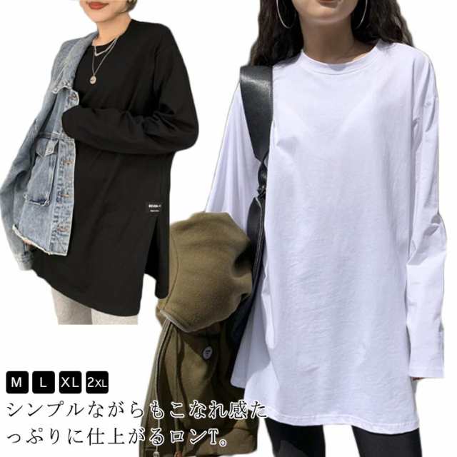 送料無料 チュニックTシャツ カットソー レディース 長袖 Tシャツ ロンT ロンティー コットン tシャツトップス プルオーバー 大人 カジュアル シンプル レイヤード サイド 裾 スリット ロング丈 チュニック お洒落 可愛い