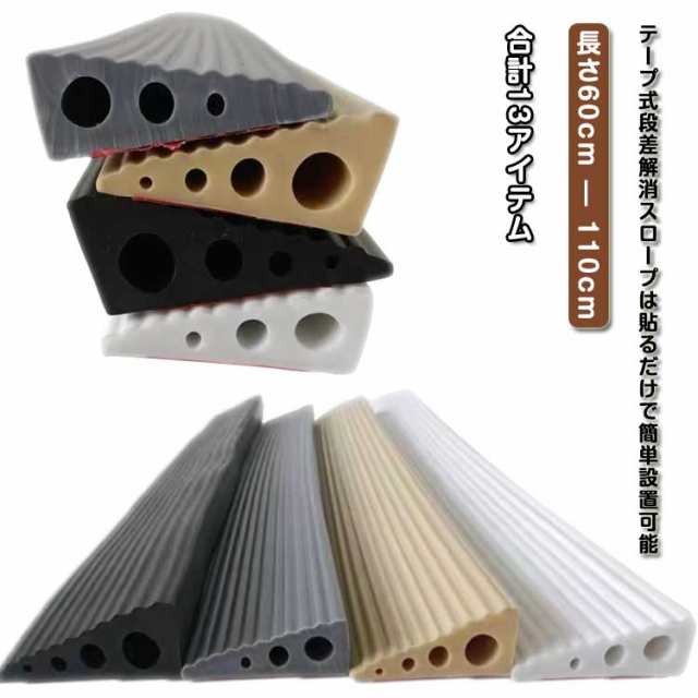 | テープ式段差解消スロープは貼るだけで簡単設置可能 スロープ面は滑り止め付きでスムーズな進行を実現。 シリコン製スロープはクッション性があり、車イスの走行時には車輪の振動を吸収し、体にショックを与えません。 室内の敷居、屋外の玄関の段差や車庫の段差など、ご使用場所に合わせて長さをカットしてお使いいただけます。 あらゆる種類の掃除ロボットに適しています。 目立つ色を置けば高齢者への注意喚起になり転倒防止につながります! | |