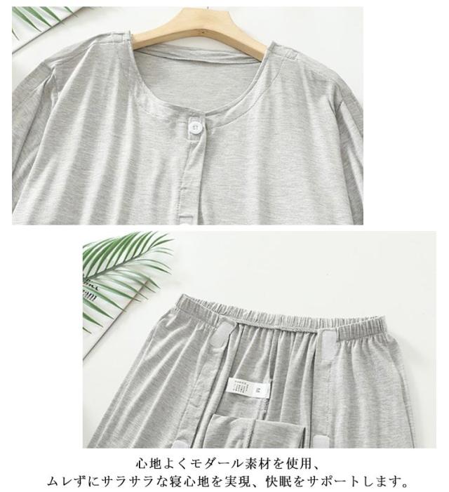 | 見た目は普通なタイプですが、便利な全開パジャマ。点滴、検温や着替え時の開閉が簡単する。 要介助者に安心です。 着替えが困難な方をサポート、オムツ替えはもちろん入浴後の着替えもこのパジャマなら安心、快適です。 半袖×ハーフパンツなので、暑い時期を過ごしていただけます。 病院、老人ホームなどで場所の使用に最適! 心地よくモダール素材を使用、ムレずにサラサラな寝心地を実現、快眠をサポートします。 | |