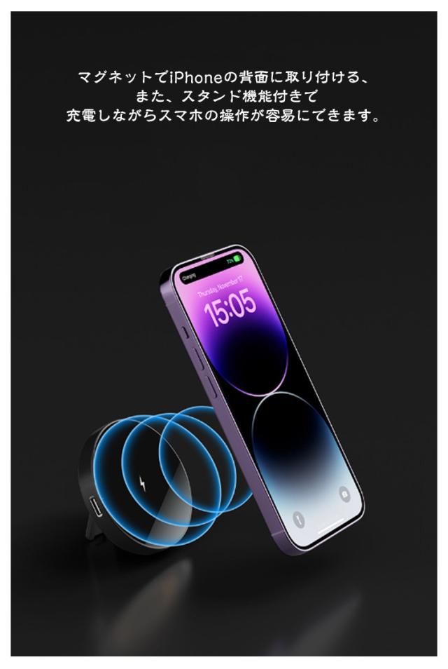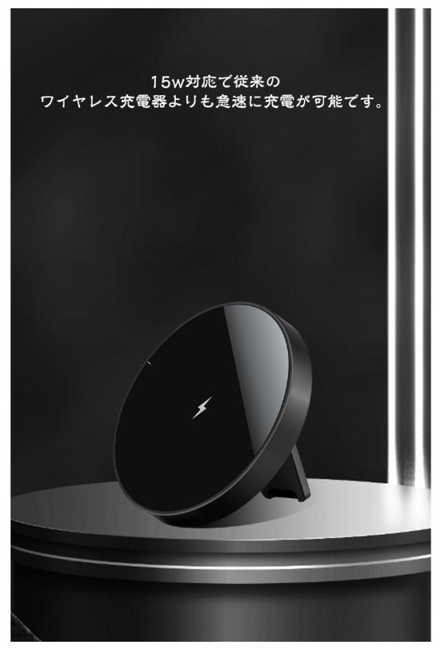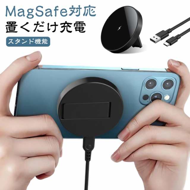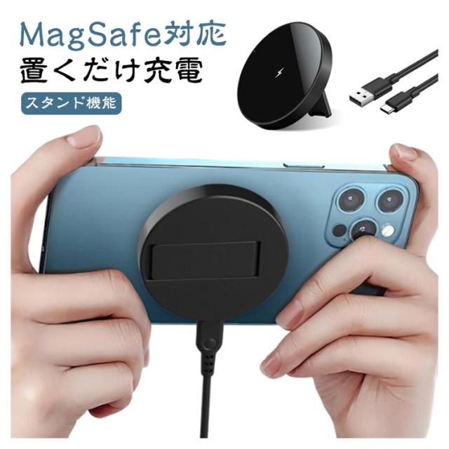 | 【MagSafe対応】【置くだけ充電】【スタンド機能】 商品内容:本体+USBケーブル(本体側Type-C) 強力な磁力でピタッと吸着するマグネット式ワイヤレス充電器 マグネットでiPhoneの背面に取り付ける、また、スタンド機能付きで充電しながらスマホの操作が容易にできます。 15w対応で従来のワイヤレス充電器よりも急速に充電が可能です。 手のひらサイズでコンパクトかつ薄い本体です。 | |