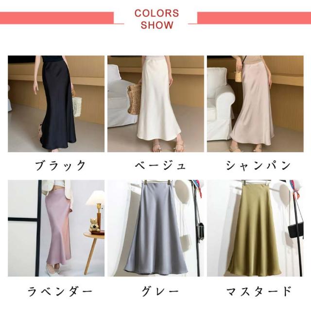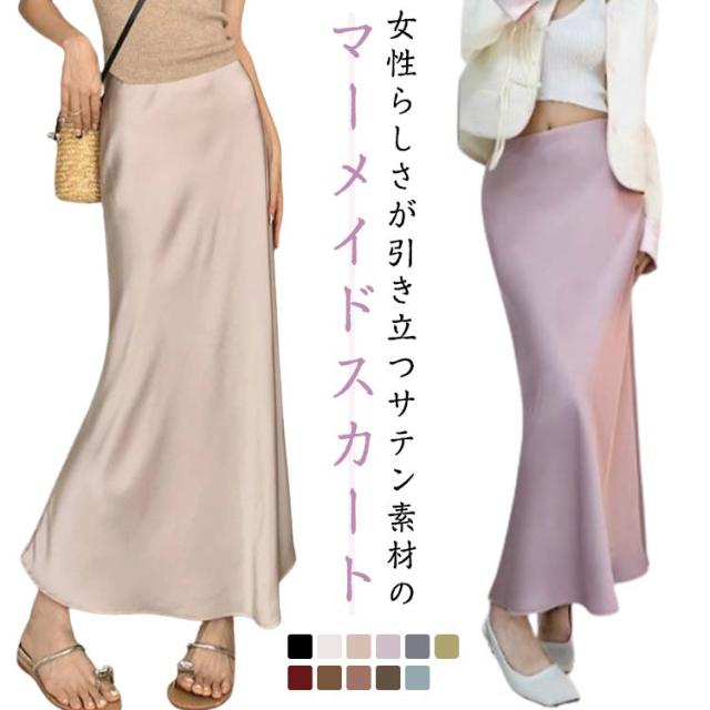 ロングスカート サテンスカート マーメイドスカート フレア 光沢感 マキシ丈 上品 マーメイドスカート スカート タイト ナロースカート トレンド フェミニン 美ライン 女性 ボトムス かわいい おしゃれ 大人 きれいめ オフィス