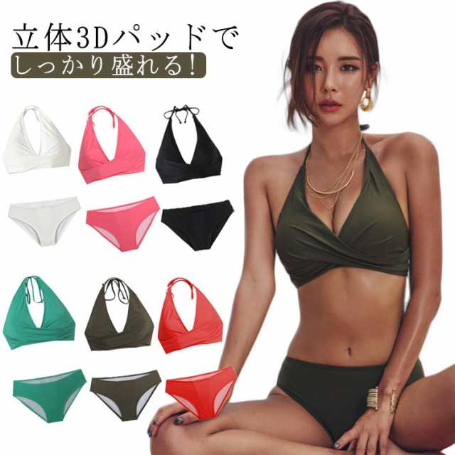 送料無料 水着 レディース 水着セット 2点 ホワイト カーキ レッド ブラック 黒 ブルー ピンク ビキニセット 大きい 女性 ママ用 海 プール スポーツ 大人 20代 30代 40代 OL ママ 母