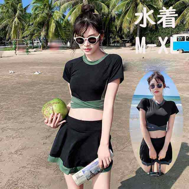 水着 2点セット レディース 可愛い スイムウェア 体型カバー セパレート式水着 中学生 高校生 10代 スポーティー 水泳 みずぎ ビーチ 海 温泉 プール M-XL 2色選ぶ