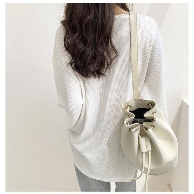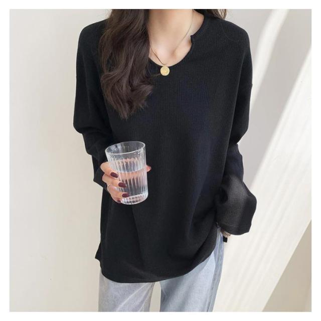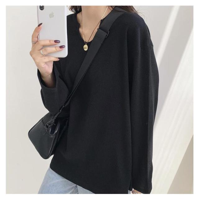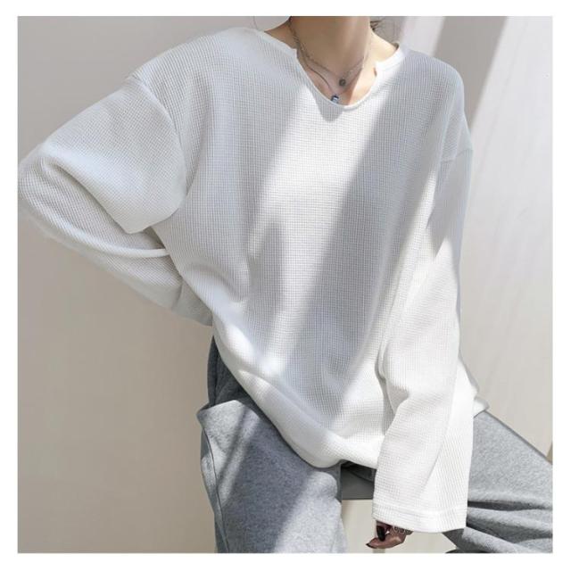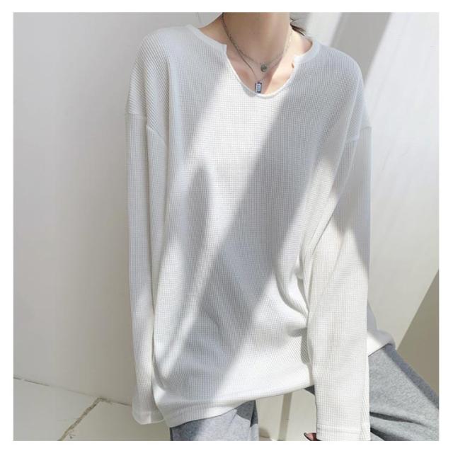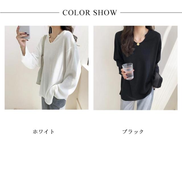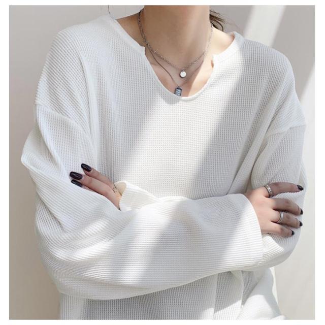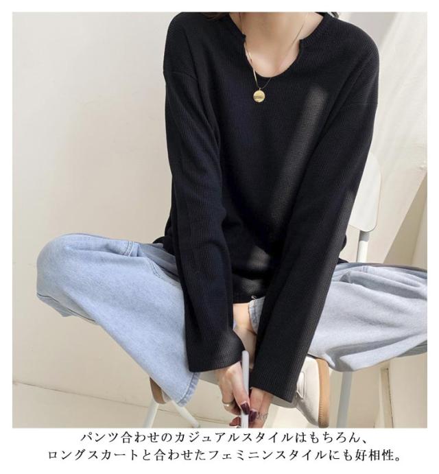 レディース Tシャツ 長袖 Vネック トップス カットソー 無地 ワッフル生地 ティーシャツ シンプル 可愛い ゆったり 大きいサイズ 体型カバー カジュアル 普段着 薄手 春秋 送料無料