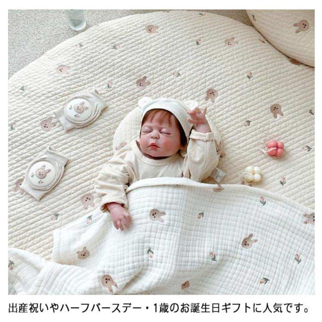 | ?ラウンド型がかわいいキルティングマット ?リビングにぽんと置くだけで、赤ちゃんのためのスペースが作れます。 ?お昼寝の時や遊ぶ時など、いつでも広げて使えるので、とても便利で重宝しています。 ?出産祝いやハーフバースデー?1歳のお誕生日ギフトに人気です。 | |