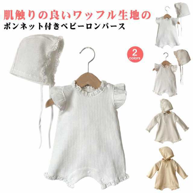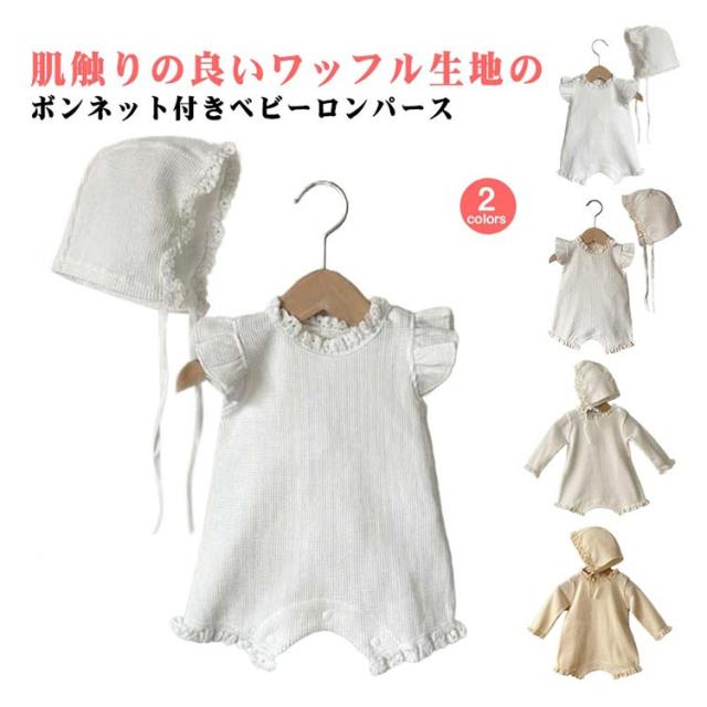 セレモニードレス 男の子 女の子 春 夏 新生児 レース 退院 お宮参り 半袖 退院着 春夏 ロンパース 2点セット ベビー服 ワッフルロンパース セット ベビー 帽子 ボンネット 前開き 赤ちゃん 子供服 ボンネット付き 夏用 綿 ワッフル 66 シンプル