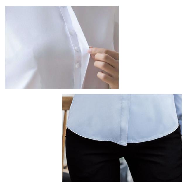 ビジネス シワになりにくい オフィス ホワイト ノーアイロン シャツ ワイシャツ レディース インナー ワイシャツ白 制服 長袖 ブラウス 事務服 お手入れ簡単 リクルート スーツ 無地 シンプル OL 開襟 大きいサイズ 大人 女性 通勤 フォーマルシャツ 半袖