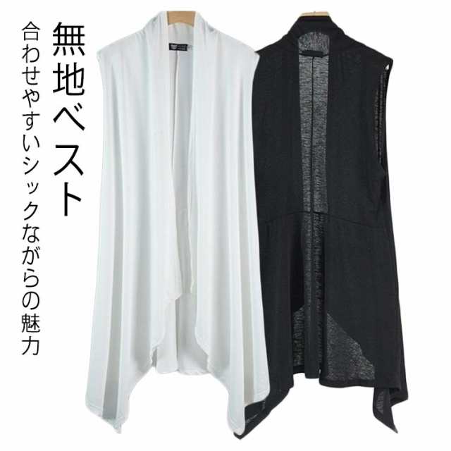 | 無地ベスト 合わせやすいシックながらの魅力 インナーに合わせてベスト風にも、羽織るだけでこなれ感を演出できる、ノースリーブショール風カーディガン トレンド感のあるロング丈のカーディガンタイプで、コートのように着こなせるのがポイント | |