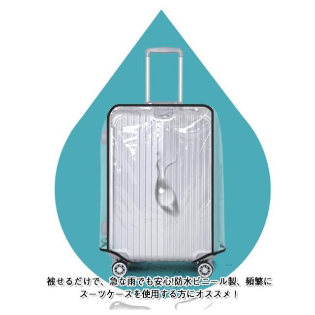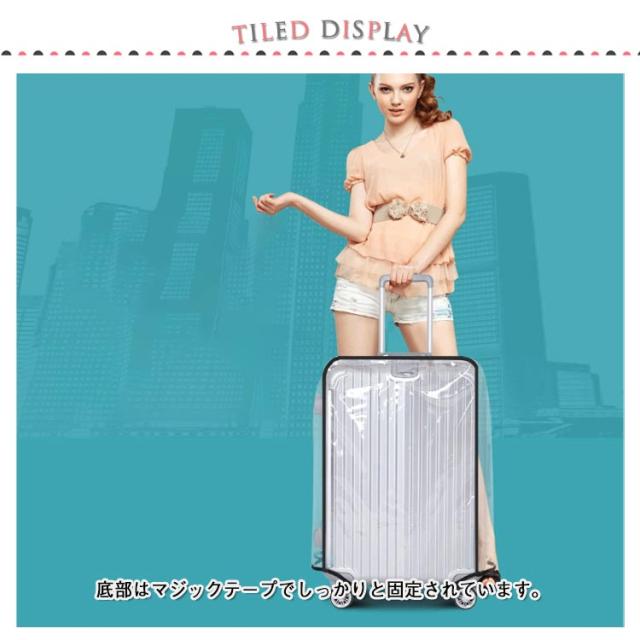| 擦り傷やホコリから守る。 被せるだけで、急な雨でも安心!防水ビニール製、頻繁にスーツケースを使用する方にオススメ! 厚みのあるPVC素材で、高い耐候性と強度を持ち、長く綺麗な状態で保てる保護カバーです。 底部はマジックテープでしっかりと固定されています。 | |