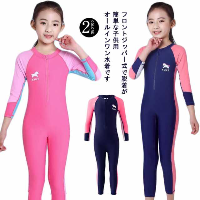 | フロントジッパー式で脱着が簡単な子供用オールインワン水着です 長袖デザインで日焼け対策としてだけではなく、擦り傷や、くらげ・害虫などからも肌を保護できます。 フィット感のある伸縮性のある素材なので、プールでたくさん動き回りたい子供たちにも快適です! 海やプールデビューにぴったりですし、学校でも着用しやすいスクール水着 お肌の露出を抑えて水着の跡がくっきり残らないのが嬉しい。 様々なシーンで、思い切り水遊びを楽しめます | |