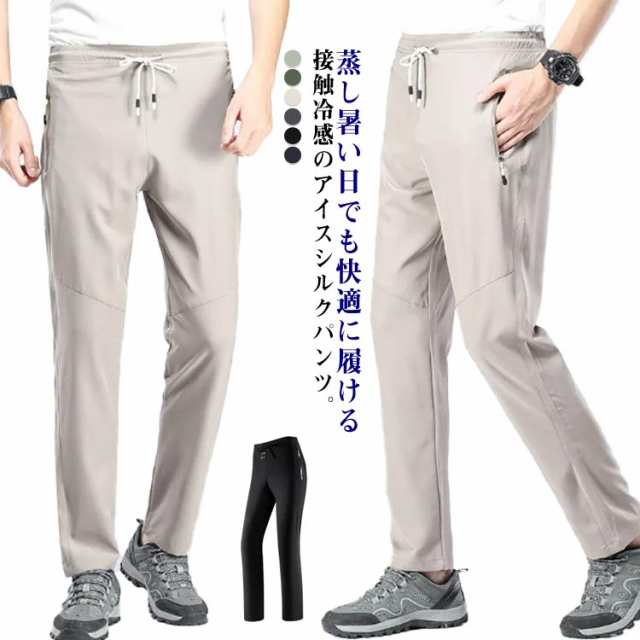 接触冷感 アイスシルクパンツ ストレッチ メンズ ゴルフパンツ ロングパンツ スポーツパンツ レディース スウェットパンツ ワークパンツ 冷感 ゆったり 長ズボン イージーパンツ 美脚 接触冷感 ファスナーポケット ズボン 吸汗 夏