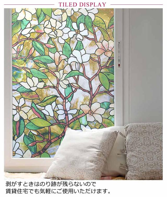 | 何度でも貼り直しできるガラスフィルムです。【ステンドグラス風】 剥がすときはのり跡が残らないので賃貸住宅でも気軽にご使用いただけます。 目隠しの同時に、部屋が暗くなりません。日光の眩しさが軽減して可視光線だけを室内に取り入れるので、パソコンが見えやすくなり、勉強と仕事の効率もかなり上がります。 鮮やかなカラーが窓をおしゃれで楽しい雰囲気にしてくれます。 貼り付け方: 1.貼り付けたい箇所のサイズにあわせてシートをカットします。 2.貼り付けたい箇所を塵や埃のないよう拭き取ってください。 3.水の入ったスプレーで窓を十分に濡らします。 4.台紙からシートを少し剥がし、端から少しずつ貼り付けていきます。スキージーをお使いいただくとスムーズに貼り付け頂けます。 5.空気が残らないように全体をならして完成です。 | |