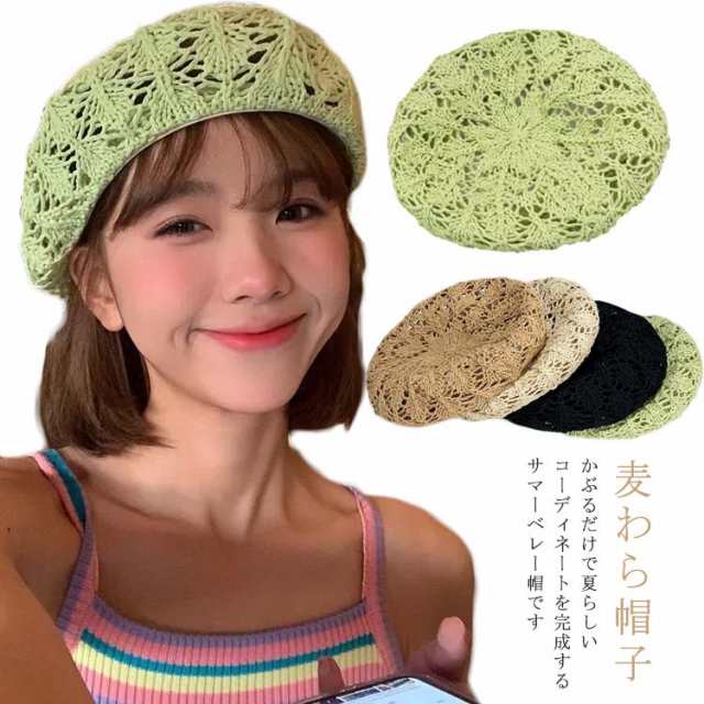 レディース ベレー帽 麦わら帽子 ストローハット 春夏 夏用 夏 ペーパー 夏 帽子 ペーパーベレー帽 紫外線 ガーデニング お洒落 細編み アウトドア 女性用 運動会 おしゃれ きれいめ 韓国ファッション 送料無料