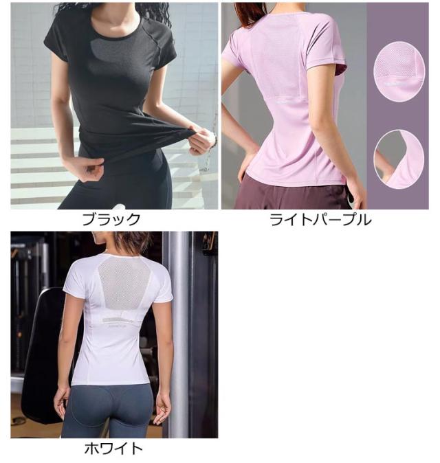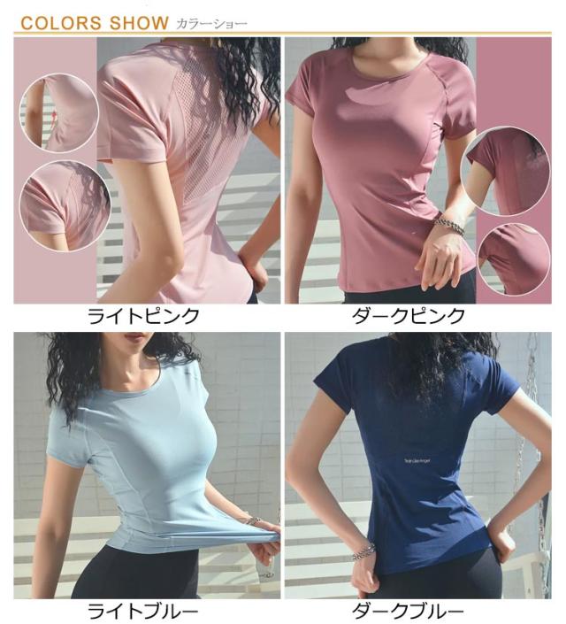 Tシャツ レディース 半袖 無地 ドライ メッシュ 吸汗 速乾 スポーツ ヨガウェア カットソー 丸首 クルーネック ホットヨガ ダンス ランニング 汗染み防止 ウォーキング フィットネス ジム ウェア ドライ 大きいサイズ UVカット ダンス おしゃれ 送料無料