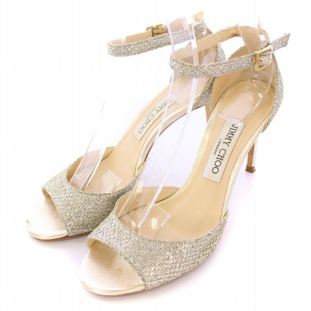 【中古】ジミーチュウ ストラップサンダル アンクル ラウンドトゥ ハイヒール シルバーカラー ゴールドカラー