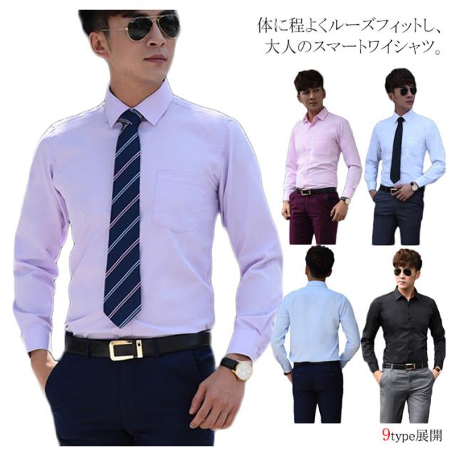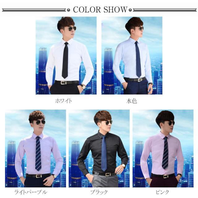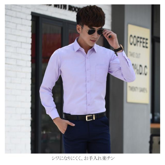 送料無料 メンズ ビジネスシャツ ワイシャツ yシャツ 長袖シャツ 無地 形態安定 ノーアイロン 長袖 Yシャツ スリム カラーワイシャツ ベーシック 速乾 シンプル フォーマル ドレスシャツ 結婚式 大きいサイズ カラーシャツ 白 黒 パープル ピンク
