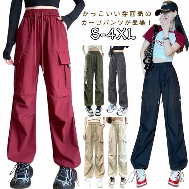 ロングパンツ 薄手 ワイド 長ズボン 秋 夏 レディース ボトムス 春 パンツ ズボン ダンス用 かわいい ゆったり 無地 ウエストゴム カーゴパンツ 動きやすい 作業着風 女性用 シンプル かっこいい 韓国ファッション カジュアル