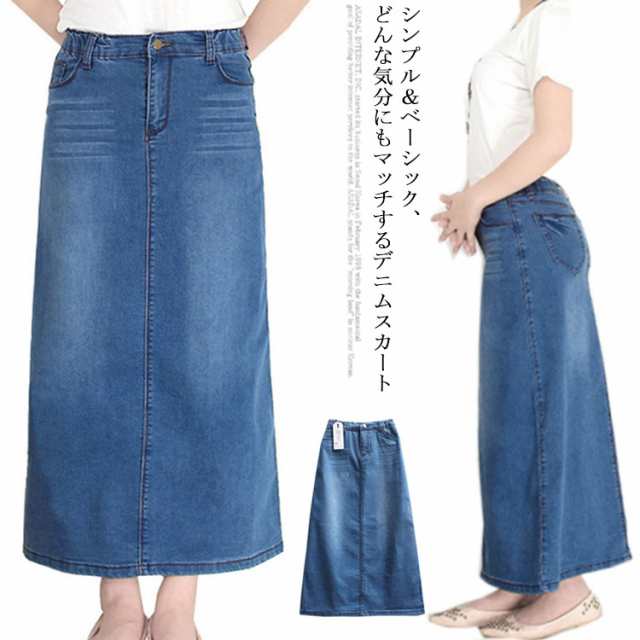 デニムロングスカート スカート ロング デニム レディース ボトムス デニム ロングスカート デニムスカート マキシスカート バックゴム 大きサイズ 春 夏 Aラインスカート