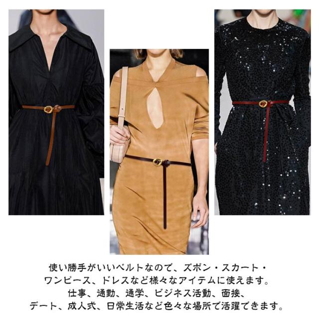 | リボン調のバックルに差し込むだけの簡単着脱。お洒落で華奢な存在感を発揮するレディース 細ベルト 細めのベルトだから、ボディラインがほっそり。 腰の高い位置に目を引くパールがウエストのアクセントになるので、脚長効果でスタイル良く着こなしができます。 輝くゴールドのバックルが、さりげなく上品さと華やかさをプラス。 派手過ぎないその色合いは、カジュアルだけでなくどんなファッションにもマッチします。 使い勝手がいいベルトなので、ズボン・スカート・ワンピース、ドレスなど様々なアイテムに使えます。仕事、通勤、通学、ビジネス活動、面接、デート、成人式、日常生活など色々な場所で活躍できます。 | |