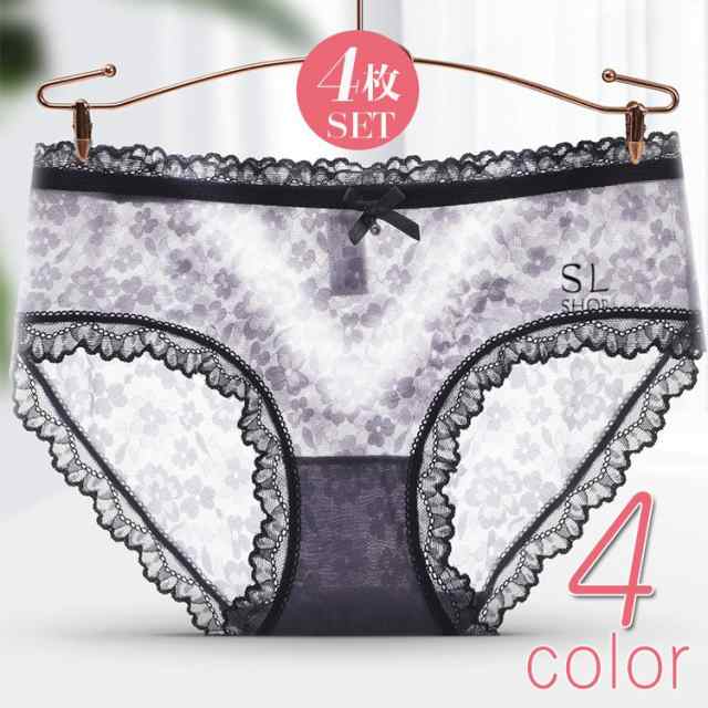 下着 レディース 4枚セット 女子 セクシー ショーツ シースルー ショーツ リボン 可愛い 20代 レース