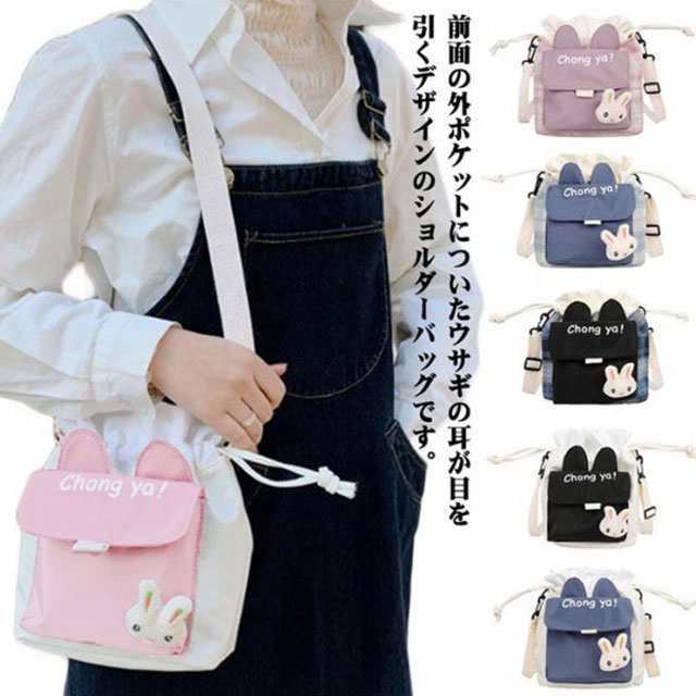 | 前面の外ポケットについたウサギの耳が目を引くデザインのショルダーバッグです。 パカっと開いて出し入れしやすい巾着型が使いやすいデザイン。 スマホが縦にすっぽり入る高さにたくさん入る11cmのたっぷりマチがうれしい♪ ショルダーストラップを取り外せば手提げとしてもご使用いただける2way仕様♪ マグネットボタンで出し入れらくらくの便利な外ポケット付きで、収納面も充実。 通学や習い事、ちょっとしたお出かけなどのデイリー使いはもちろん、 イベント・ライブ・旅行・遠足などでも活躍してくれます。 友人や家族へのプレゼントにもおすすめです♪ | |