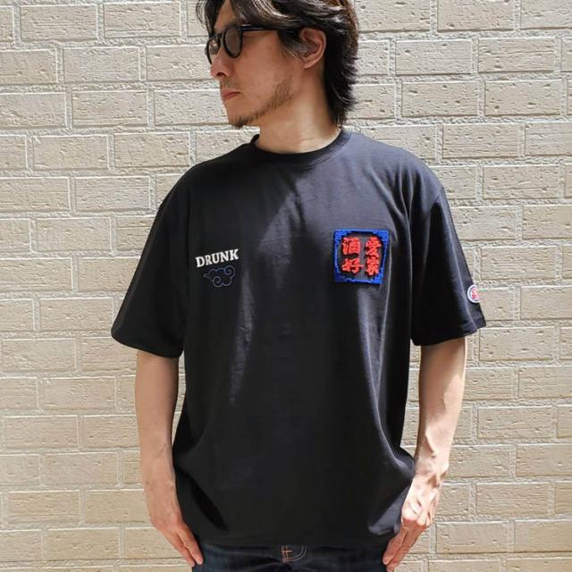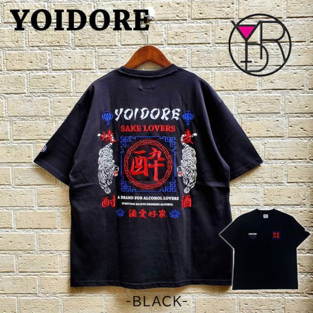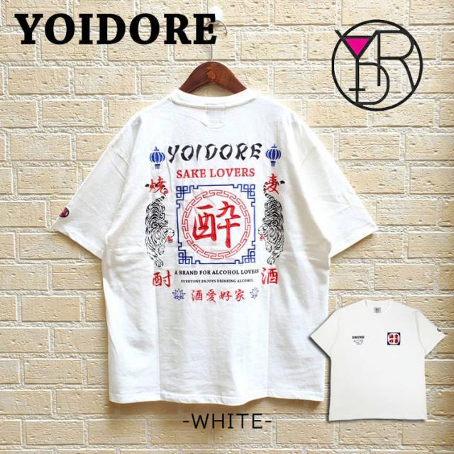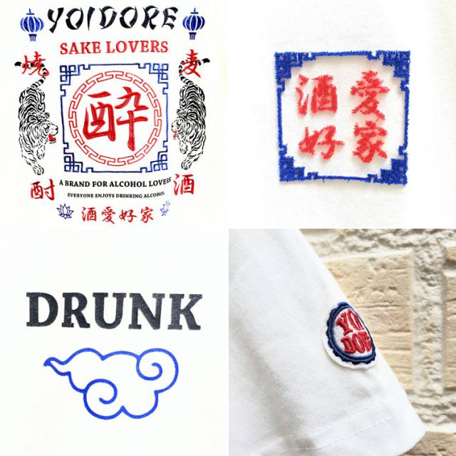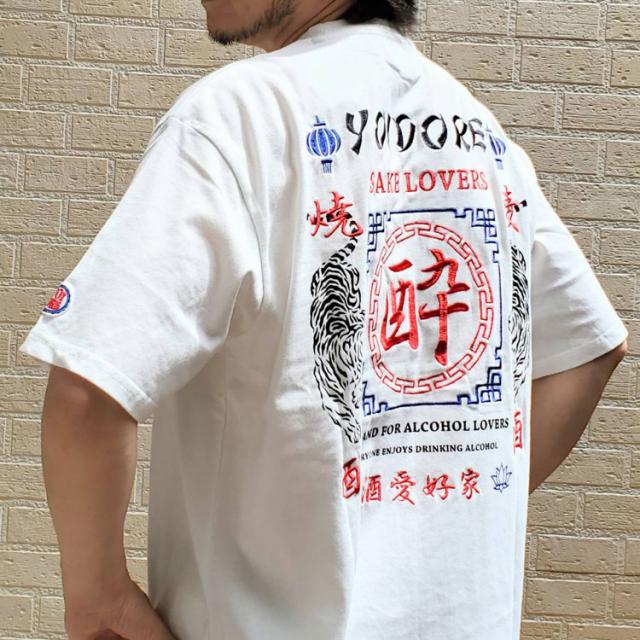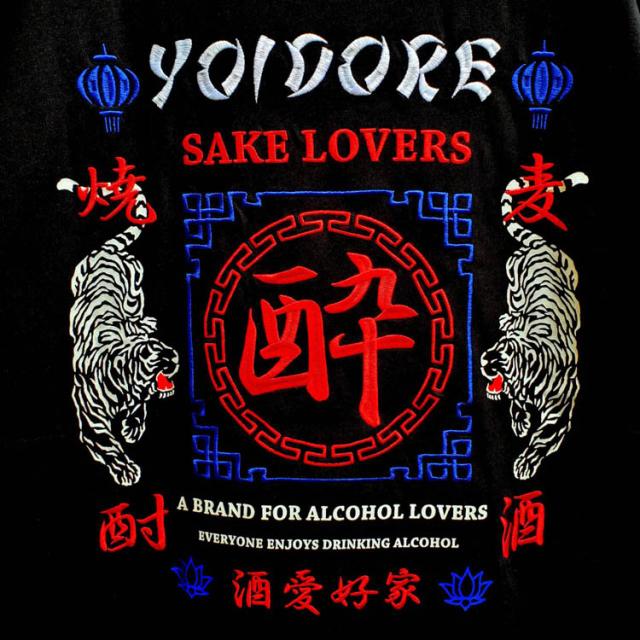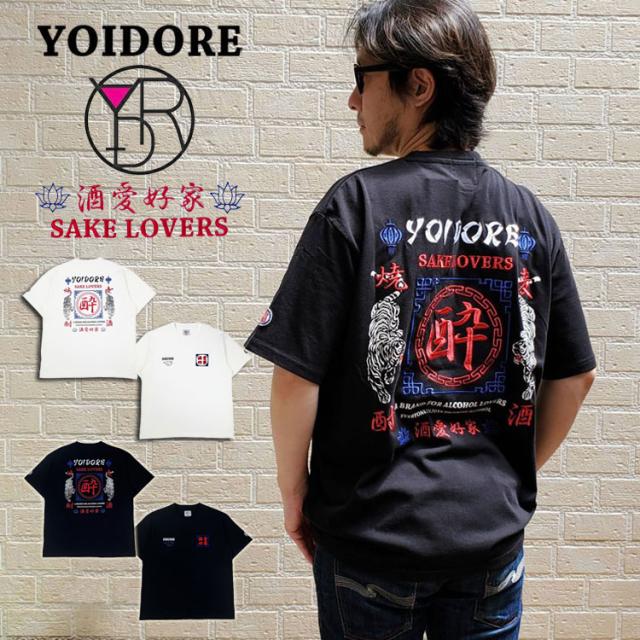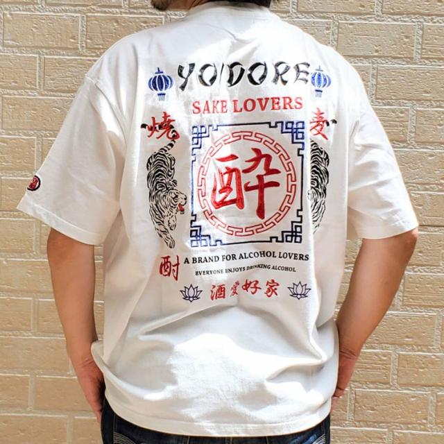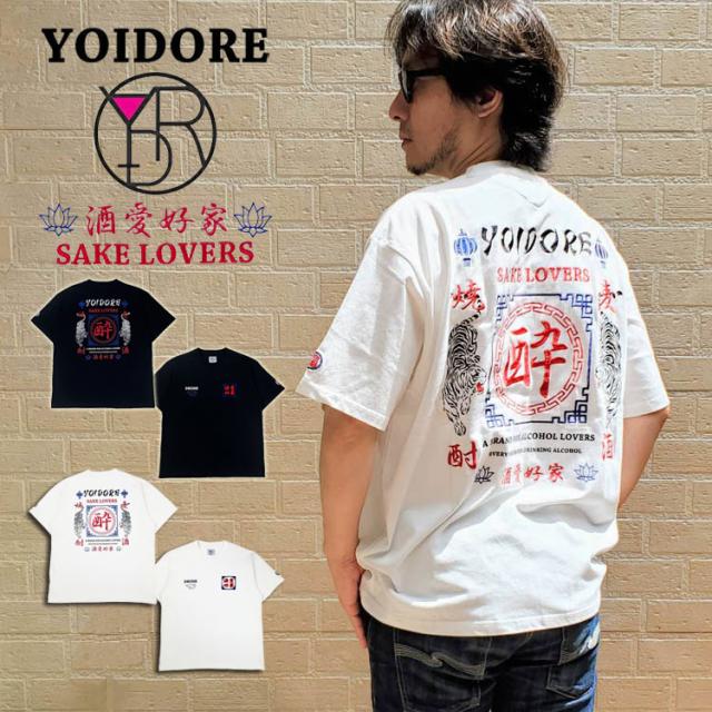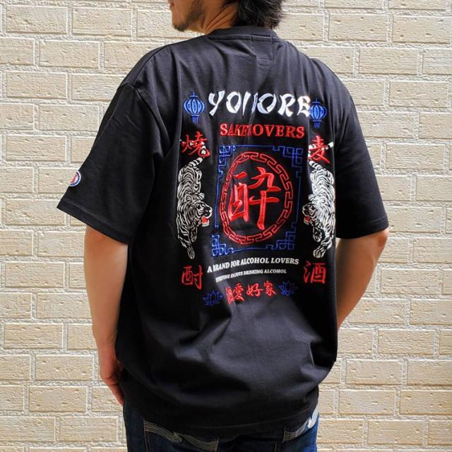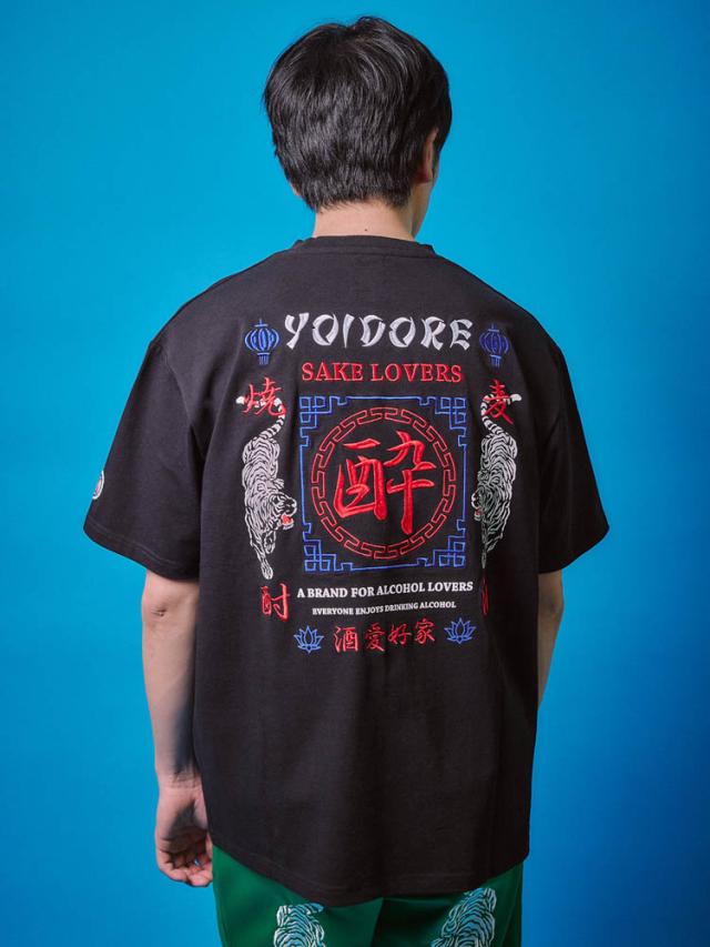 YOIDORE 酒愛好家 半袖Tシャツ 愛酒家 刺繍 SAKE LOVER プリント Tシャツ バックプリント よいどれ クルーネック 半袖 Tee ユニセックス プレゼント 漢字 ルーズシルエット 825610